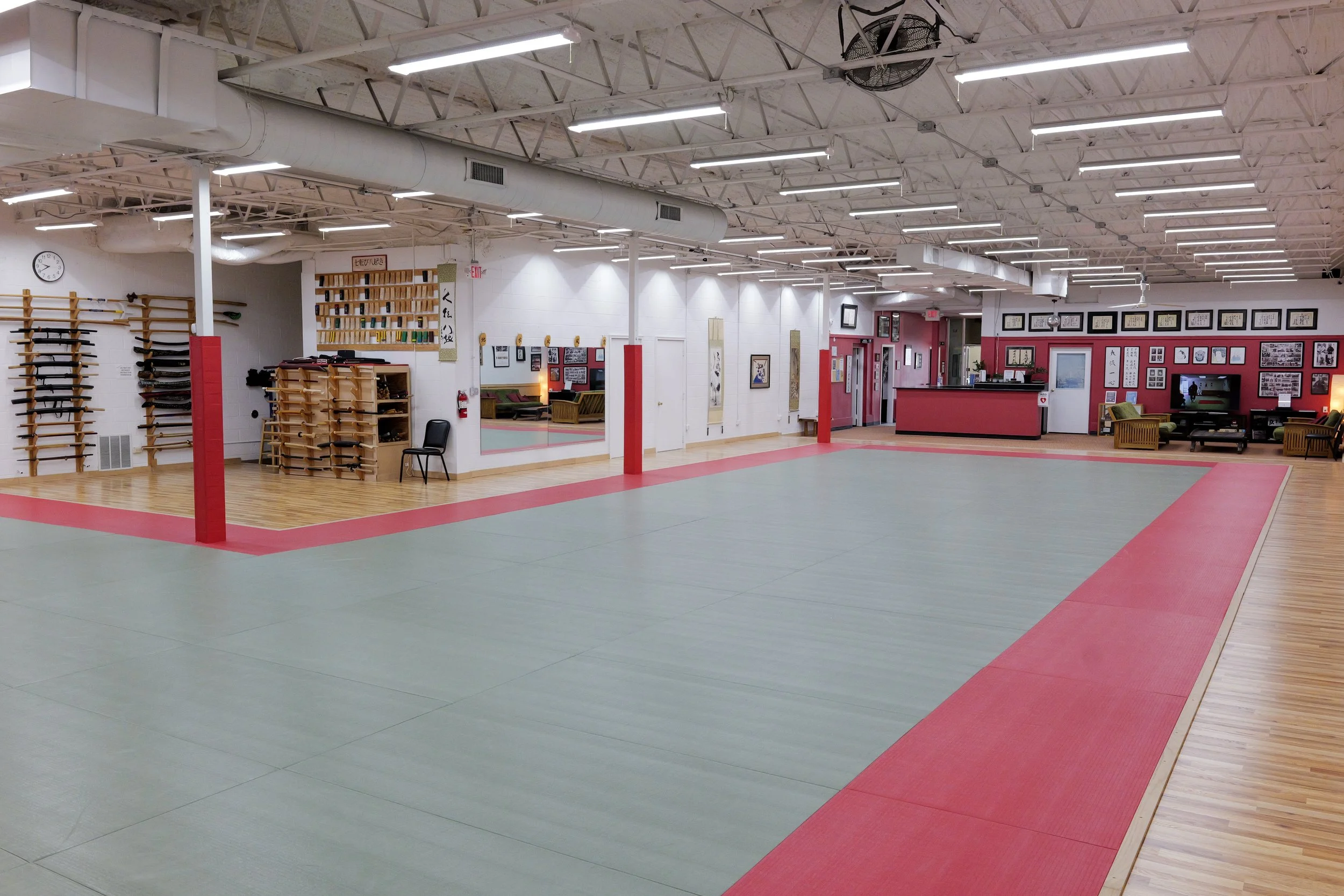 The Dayton Bujinkan Dojo facility maintains 9200 square feet of space with 100+ tatami training mats, bathrooms, changing rooms, a kitchenette, sitting area, hand targets, and practice training weapons for its members. In addition to martial arts training, the Dayton Bujinkan Dojo offers yoga, Tai Chi, and boxing-style striking classes at its facility.